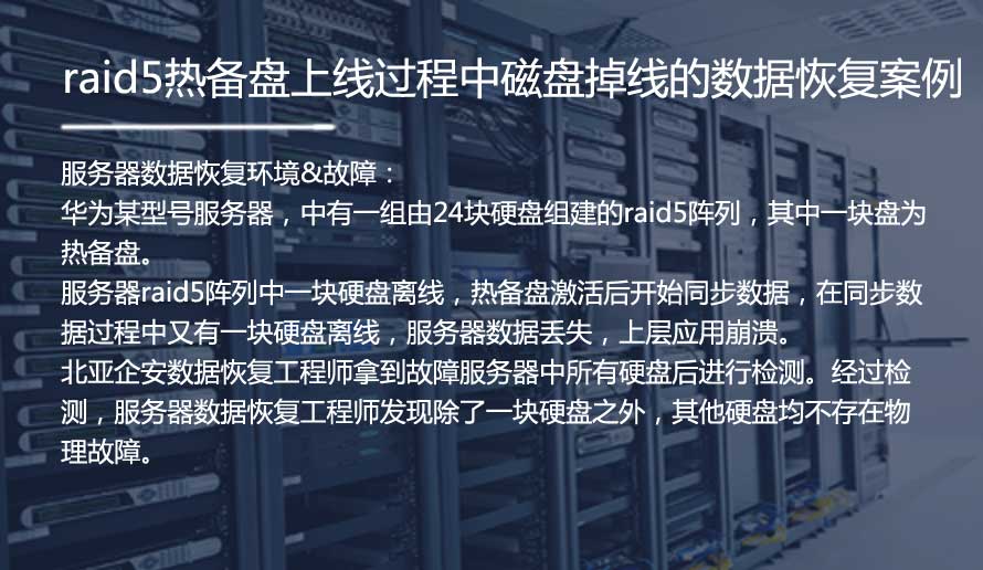 服务器raid5阵列中一块硬盘离线,热备盘激活后开始同步数据,在同步数据过程中又有一块硬盘离线,服务器数据丢失,上层应用崩溃。