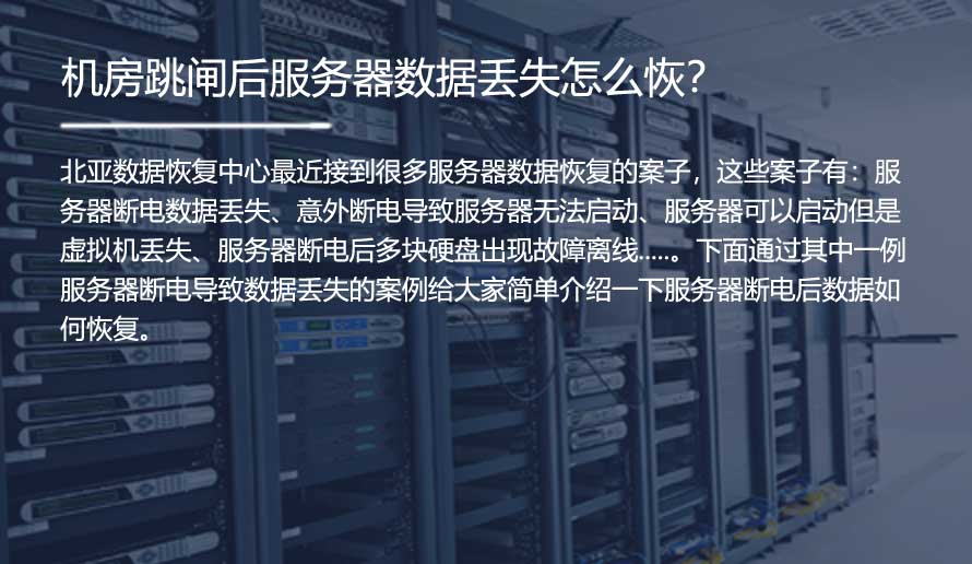 北亚数据恢复中心最近接到很多服务器数据恢复的案子,这些案子有:服务器断电数据丢失、意外断电导致服务器无法启动、服务器可以启动但是虚拟机丢失、服务器断电后多块硬盘出现故障离线.....。下面通过其中一例服务器断电导致数据丢