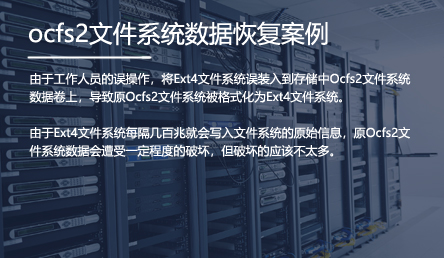 由于工作人员的误操作,将Ext4文件系统误装入到存储中Ocfs2文件系统数据卷上,导致原Ocfs2文件系统被格式化为Ext4文件系统。