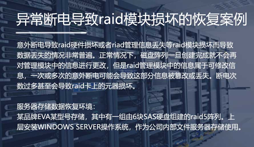 意外断电导致raid硬件损坏或者riad管理信息丢失等raid模块损坏而导致数据丢失的情况非常普遍。正常情况下,磁盘阵列一旦创建完成就不会再对管理模块中的信息进行更改,但是raid管理模块中的信息属于可修改信息,一次或多