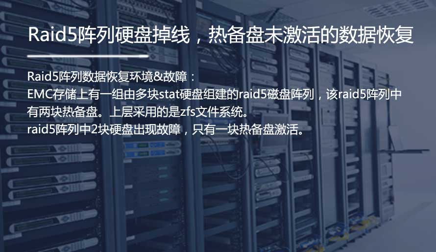 EMC存储上有一组由多块stat硬盘组建的raid5磁盘阵列,该raid5阵列中有两块热备盘。上层采用的是zfs文件系统。