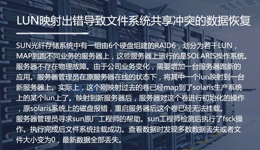 SUN光纤存储系统中有一组由6个硬盘组建的RAID6,划分为若干LUN,MAP到跑不同业务的服务器上,这些服务器上运行的是SOLARIS操作系统。