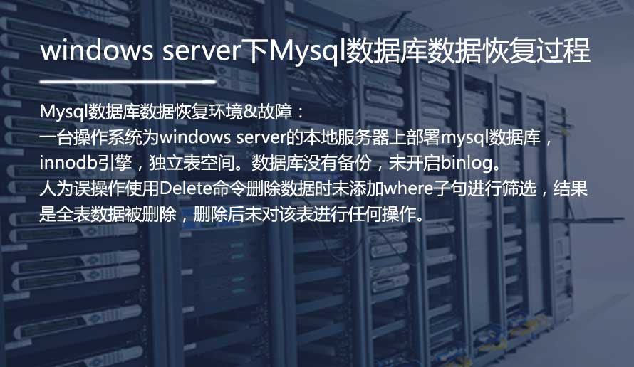 一台操作系统为windows server的本地服务器上部署mysql数据库,innodb引擎,独立表空间。数据库没有备份,未开启binlog。