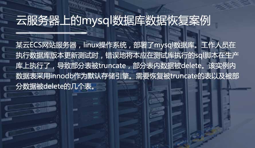 某云ECS网站服务器,linux操作系统,部署了mysql数据库。工作人员在执行数据库版本更新测试时,错误地将本应在测试库执行的sql脚本在生产库上执行了,导致部分表被truncate,