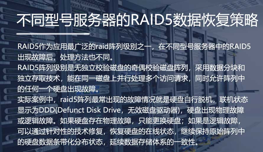 RAID5作为应用最广泛的raid阵列级别之一,在不同型号服务器中的RAID5出现故障后,处理方法也不同。