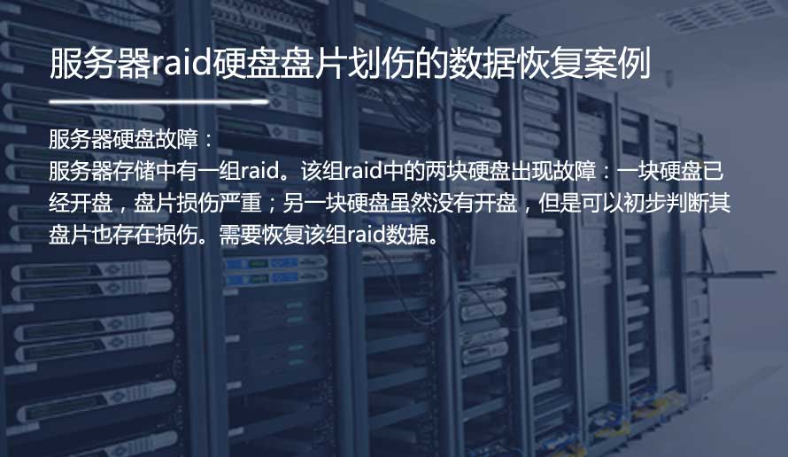 服务器存储中有一组raid。该组raid中的两块硬盘出现故障:一块硬盘已经开盘,盘片损伤严重;另一块硬盘虽然没有开盘,但是可以初步判断其盘片也存在损伤。需要恢复该组raid数据。