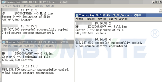 1、将故障服务器中所有磁盘编号取出,连接到北亚企安备份服务器平台上以只读方式进行全盘备份。后续的数据分析和数据恢复操作都基于镜像文件进行,避免对原始数据造成二次破坏。在备份过程中发现阵列中的三块磁盘可以正常读取,均没有发现坏道。